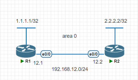 2.2.2.2 1 FULL/DR 00:00:33 192.168.12.2 Ethernet0/0